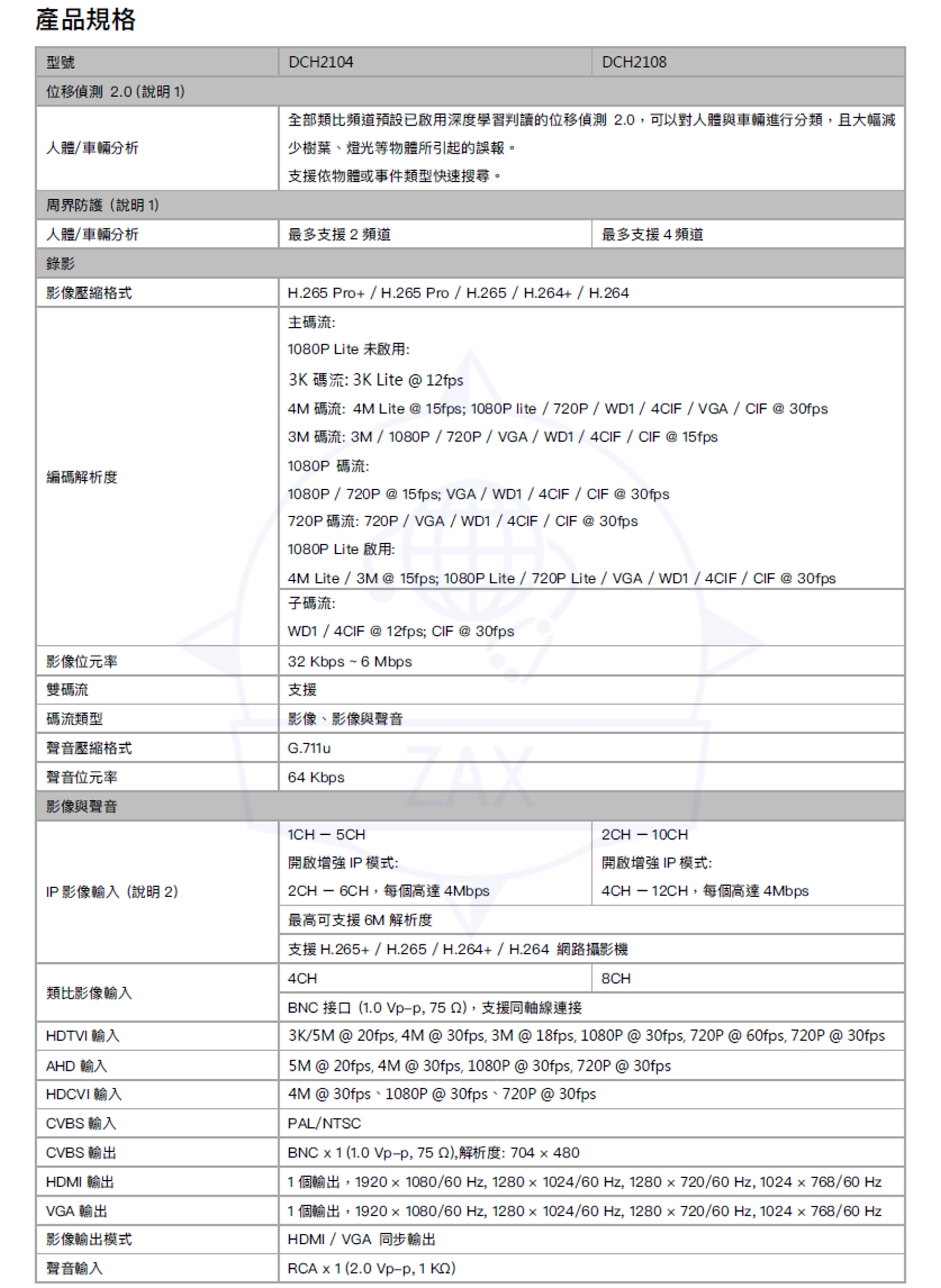 ★ ⽀援類比和網路攝影機的多種影像內容分析 (VCA)功能